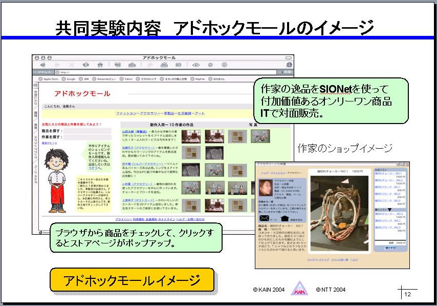 作家自身が独自のモール(etc/革製品専門モール、アクセサリー専門モールなど)を設置できる。 |